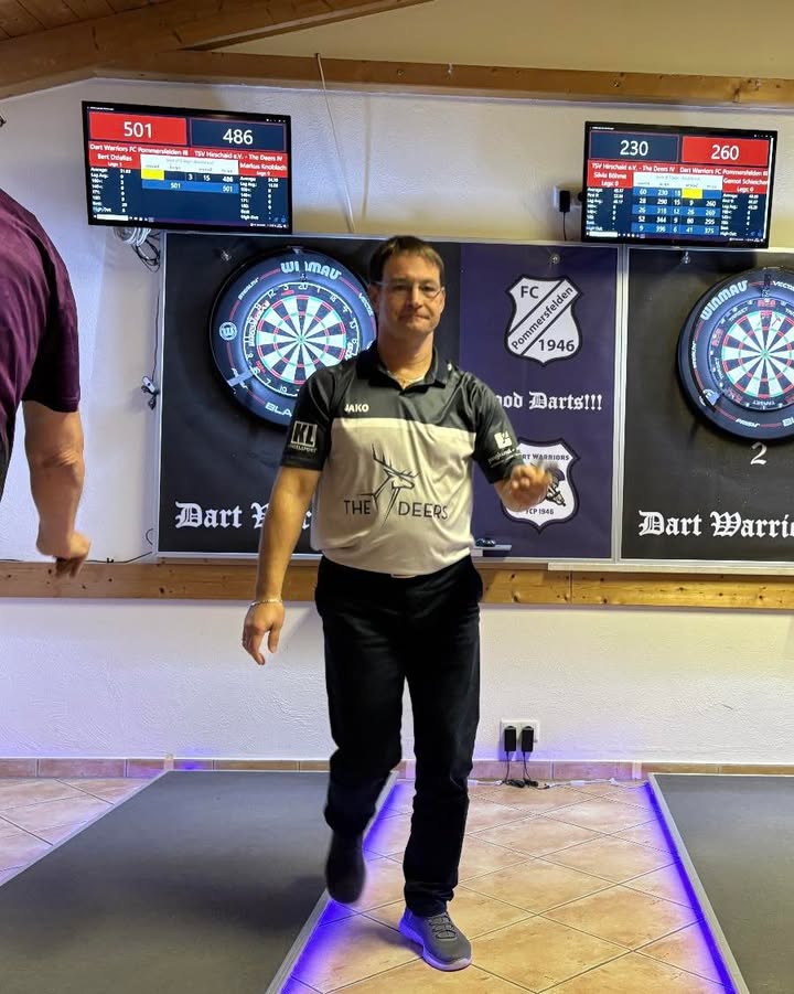Am 5. Spieltag der 4. Bezirksliga B traf unsere Mannschaft Deers IV auf die Dart Warriors Pommersfelden III. Es entwickelte sich ein packendes Duell, das leider mit einer knappen Niederlage für uns endete.